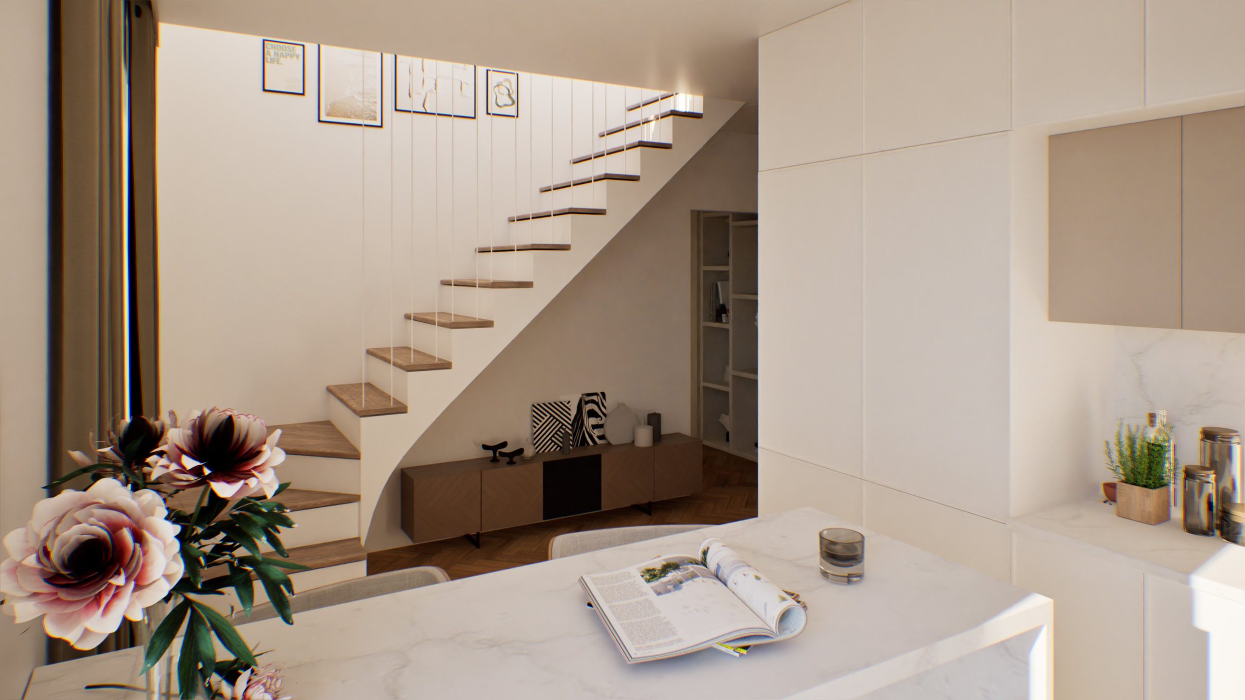 Prezentujemy przykładowe wykończenie jednego z dwupoziomowych apartamentów.